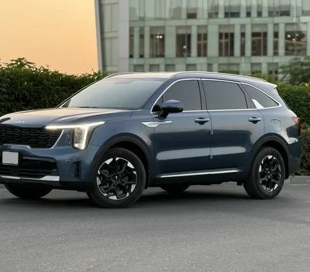 Rent and drive this Kia Sorento 2024 model in Dubai. Standard mileage limit of 250 km/day (AED 2 per additional km applicable). Contact Al Faraj Rent a Car directly for bookings and inquiries